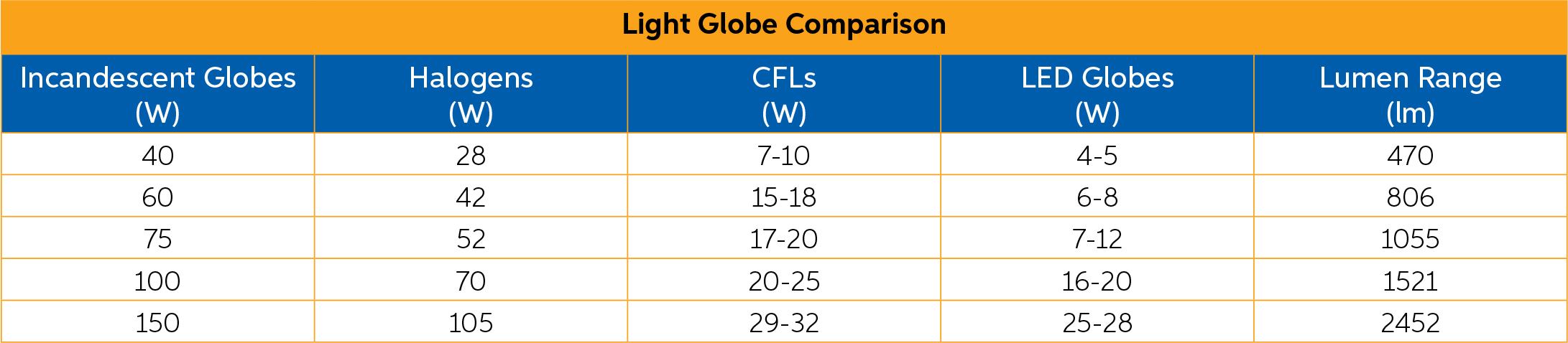 • The 6 watt Redilight has an approximate lumen output of a traditional 50 watt incandescent globe in full sun.